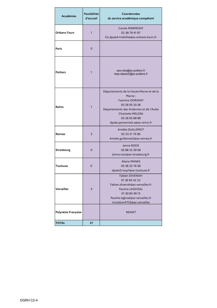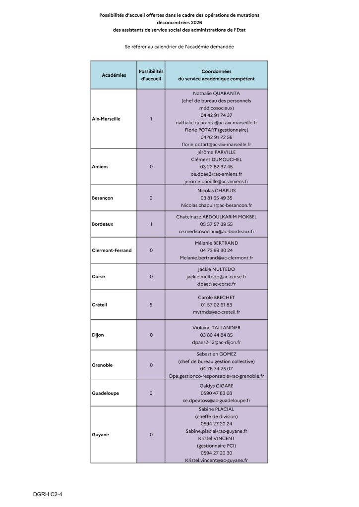 Possibilités d’accueil dans le cadre des opérations de mutations déconcentrées 2026